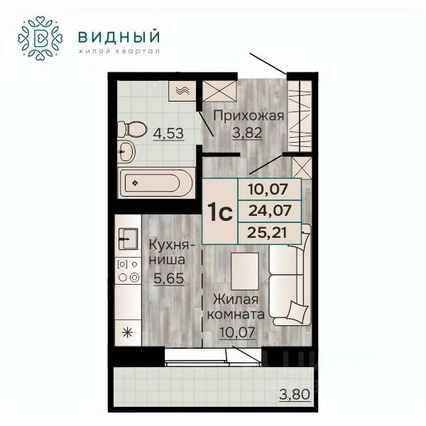 Общая площадь25,21 м²