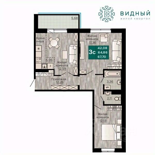 Общая площадь67,7 м²