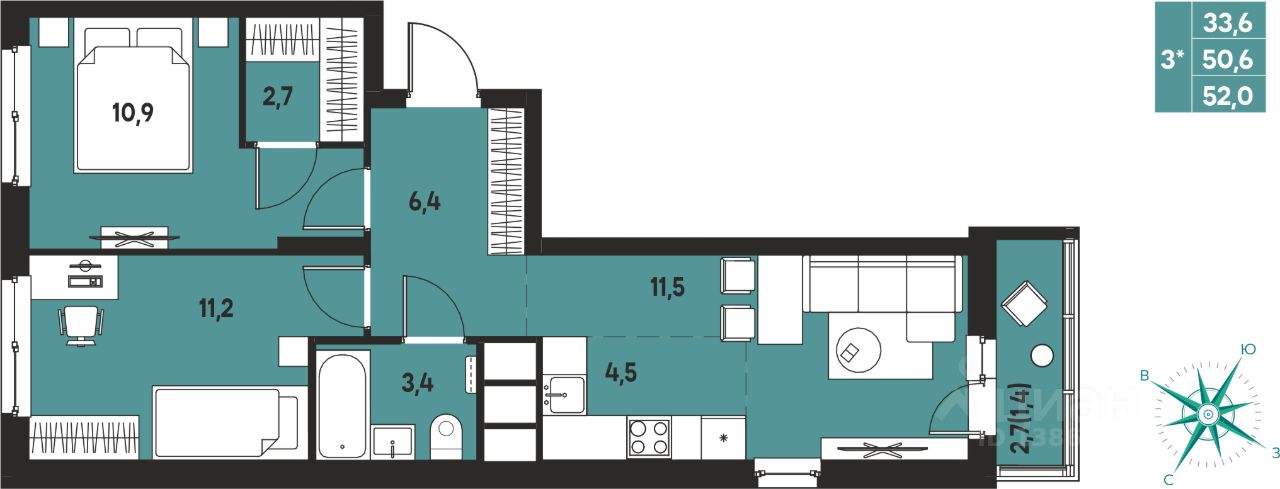 33,6 м²