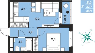 34,9 м²