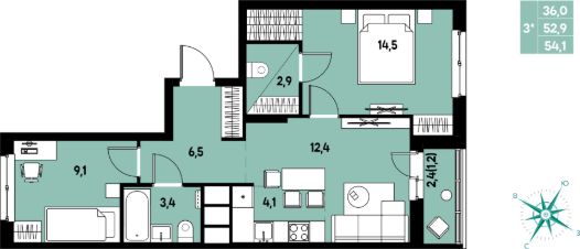 54,1 м²