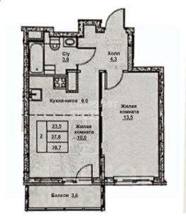 Общая площадь38,9 м²