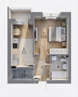 Комфортный 4 этаж! Большая прихожая с отдельной гардеробной. Просторная и функциональная кухня 7,1 кв.м. с современным гарнитуром и выходом на лоджию. Уютная комната, где удалось разместить большую кровать, вместительный шкаф и организовать полноценное рабочее место! В прихожей и комнате постелен качественный ламинат, а на кухне и в ванной комнате линолеум!