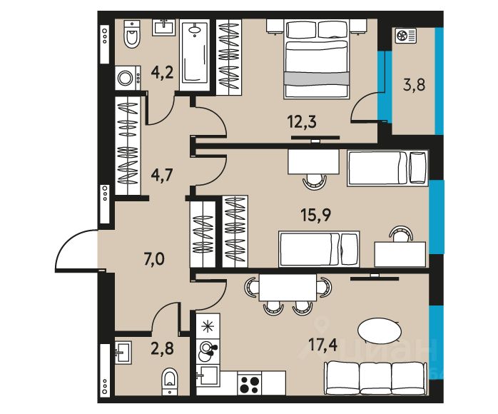 3-комнатная квартира 368