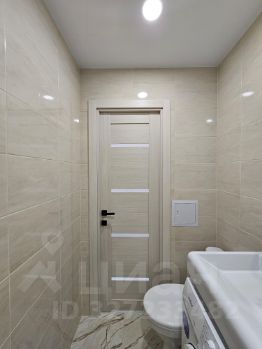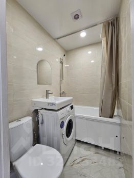 Санузел отделан кафелем, под раковиной оборудовано место для стиральной машины, куда она уже установлена.