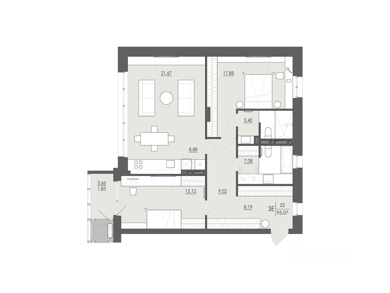 95,07 м²