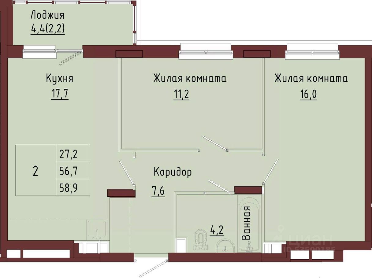 61,1 м²