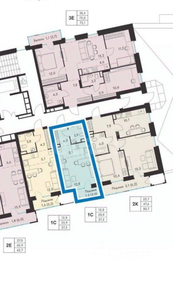 Студия общей площадью 27,3 м2