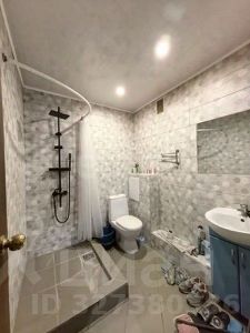 Санузел отделан кафельной плиткой и оборудован душевой кабиной.