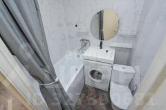 - Совмещенный санузел: ванная с экраном, раковина, унитаз, стиральная машина.