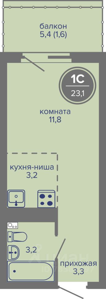 Общая площадь23,1 м²