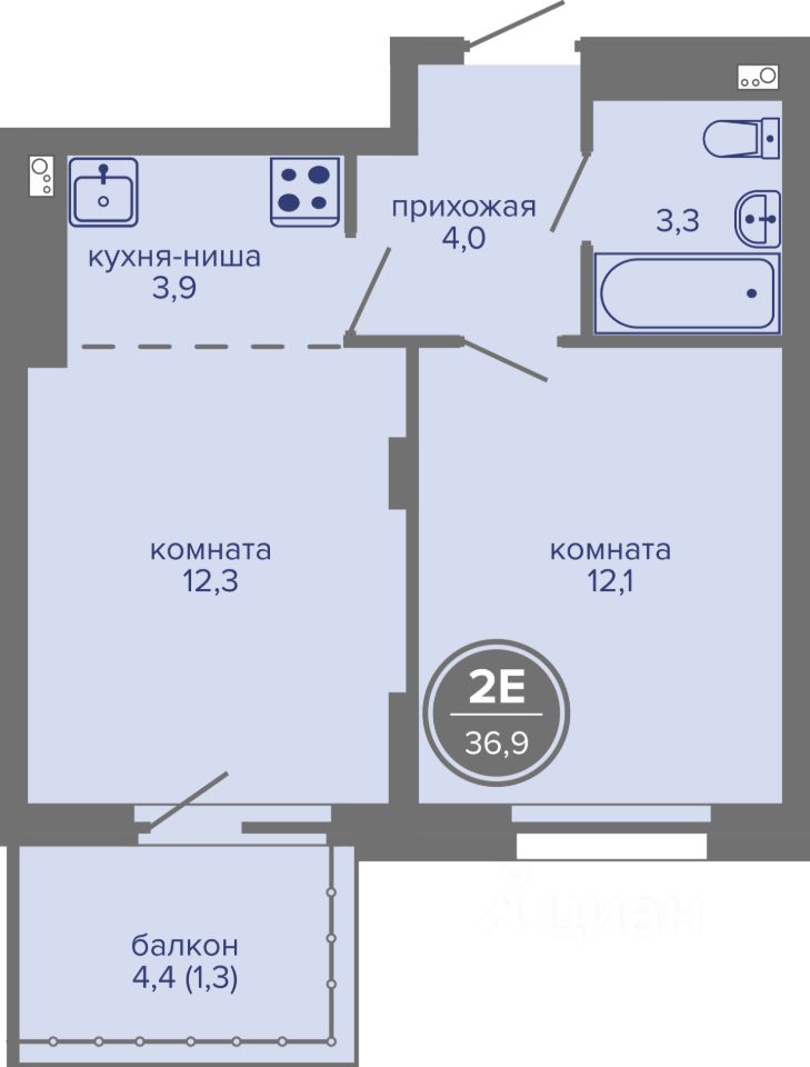 Общая площадь36,9 м²
