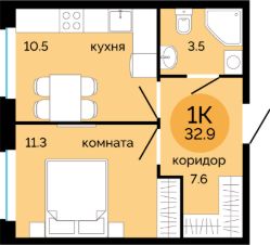 Общая площадь32,9 м²