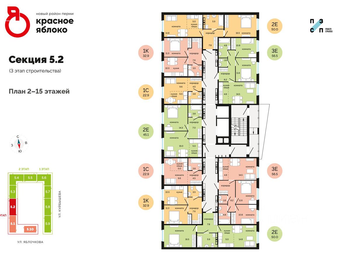 СПЕЦСКИДКИ ДО 6,5% на готовые квартиры (только до 28.02.2026)! Условия приобретения: - ИПОТЕКА ДЛЯ ВСЕХ от 13,4% на весь срок (до 31.03.2026) - Рассрочка от ПЗСП 20 000 рублей в месяц (до 31.08.2026) - Семейная ипотека от 4,5% на весь срок (до 30.06.2026) - Ипотека 10,5% для всех (до 31.03.2026); - Семейная ипотека с государственной поддержкой; - Скидка 2% на приобретение квартир при стопроцентной оплате (до 31.03.2026); - Рассрочка для будущих мам от 20 000 руб/мес. (до 31.03.2026); - Ипотека на весь срок от 12,99% (до 31.03.2026); - Материнский и жилищный сертификаты; - Скидка 3% участникам СВО на все объекты (до 31.03.2026); - Трейд Ин (до 31.06.2026) - "Добрые дни от ПЗСП" социальная скидка до 3% (до 31.08.2026) - Скидка за каждого ребёнка (до 31.08.2026) - Бесплатное такси до офиса продаж Квартира в ЖК "Красное Яблоко" — это ваше личное пространство для жизни, вдохновения и отдыха, где каждая деталь создана для вашего комфорта. В ЖК есть сданные дома, заезжай и живи! ЖК "Красное яблоко" — новый концептуальный район от застройщика ПЗСП в Свердловском районе Перми. Название объединяет известные пермякам микрорайон Краснова и улицу Яблочкова. Расположение и транспорт: - Адрес: ул. Яблочкова, 5. Удобные въезды с ул. Яблочкова и ул. Куйбышева (с новым светофорным заездом). - Рядом остановка "Яблочкова". - Всего 15-20 минут до центра города. Комфорт и технологии: - Европейские тренды: монолитно-каркасная технология с высокой звуко- и теплоизоляцией. - Теплые лоджии и большие окна позволят экономить на отоплении и освещении. - Свобода планировки: возможность обустроить кабинет или гардеробную по своему желанию. - Простор: высота потолков 2,74 м (3,05 м на первых этажах). - Коммуникации: современное малошумное оборудование, индивидуальные счетчики в квартирах. Безопасность и инфраструктура: - Закрытый двор: без машин, с детскими и спортивными площадками, зонами отдыха. - Безбарьерная среда: удобные входные группы на уровне земли. - Охрана: система видеонаблюдения и умный домофон с управлением через приложение
