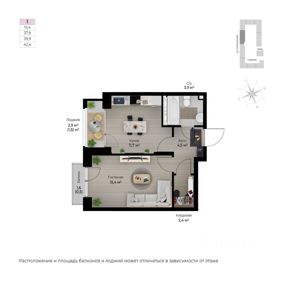 42,4 м²