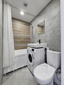 Санузел отделан кафелем, под раковиной оборудовано место для стиральной машины, куда она уже установлена.