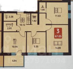 - Три изолированные комнаты правильной формы и хорошей площади (10, 15 и 12 кв м)