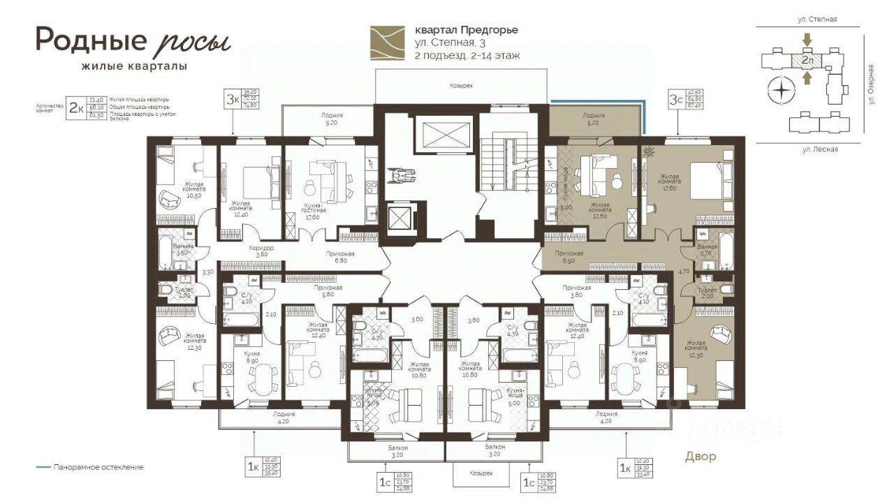 Продаётся 3-комнатная квартира в строящемся доме (Степная, 3), срок сдачи: III-кв. 2028, общей площадью 67.4 кв.м., на 14 этаже. Новый жилой комплекс "Родные росы" от Специализированного застройщика "Финпроект" расположен в с. Фролы по ул. Академическая.