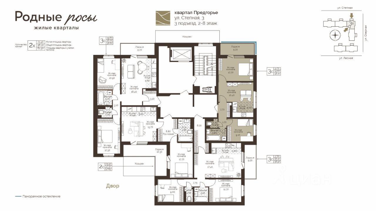 Продаётся 3-комнатная квартира в строящемся доме (Степная, 3), срок сдачи: III-кв. 2028, общей площадью 48.2 кв.м., на 7 этаже. Новый жилой комплекс "Родные росы" от Специализированного застройщика "Финпроект" расположен в с. Фролы по ул. Академическая.