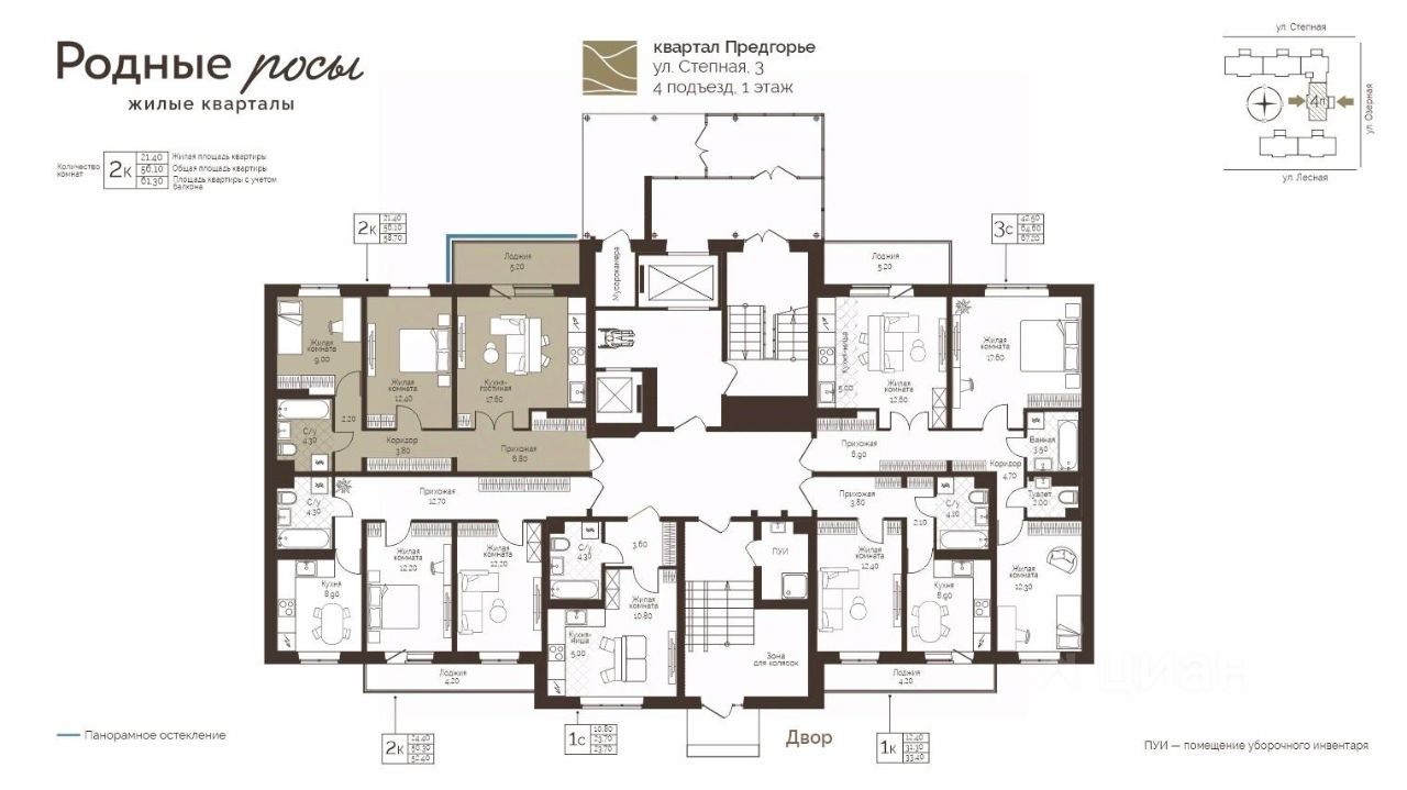 Продаётся 2-комнатная квартира в строящемся доме (Степная, 3), срок сдачи: III-кв. 2028, общей площадью 58.7 кв.м., на 1 этаже. Новый жилой комплекс "Родные росы" от Специализированного застройщика "Финпроект" расположен в с. Фролы по ул. Академическая.