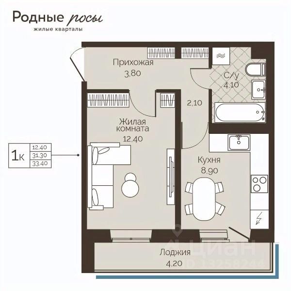 Продаётся 1-комнатная квартира в строящемся доме (Лесная, 2), срок сдачи: III-кв. 2028, общей площадью 33.4 кв.м., на 2 этаже. Новый жилой комплекс "Родные росы" от Специализированного застройщика "Финпроект" расположен в с. Фролы по ул. Академическая.