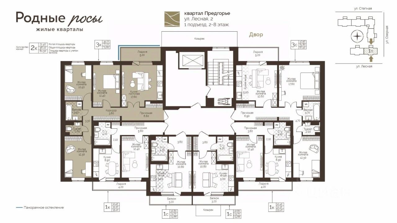 Продаётся 3-комнатная квартира в строящемся доме (Лесная, 2), срок сдачи: III-кв. 2028, общей площадью 74.8 кв.м., на 3 этаже. Новый жилой комплекс "Родные росы" от Специализированного застройщика "Финпроект" расположен в с. Фролы по ул. Академическая.