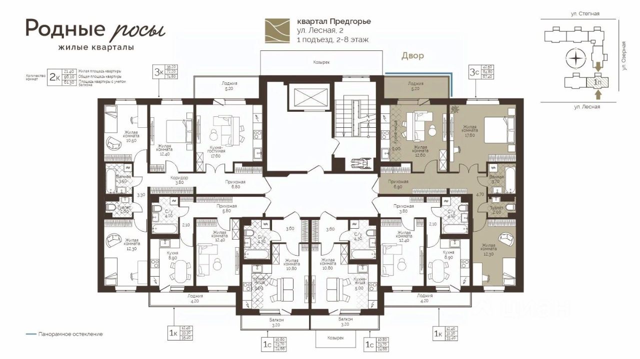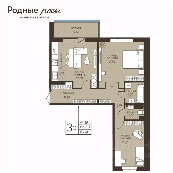 Продаётся 3-комнатная квартира в строящемся доме (Лесная, 2), срок сдачи: III-кв. 2028, общей площадью 67.4 кв.м., на 6 этаже. Новый жилой комплекс "Родные росы" от Специализированного застройщика "Финпроект" расположен в с. Фролы по ул. Академическая.