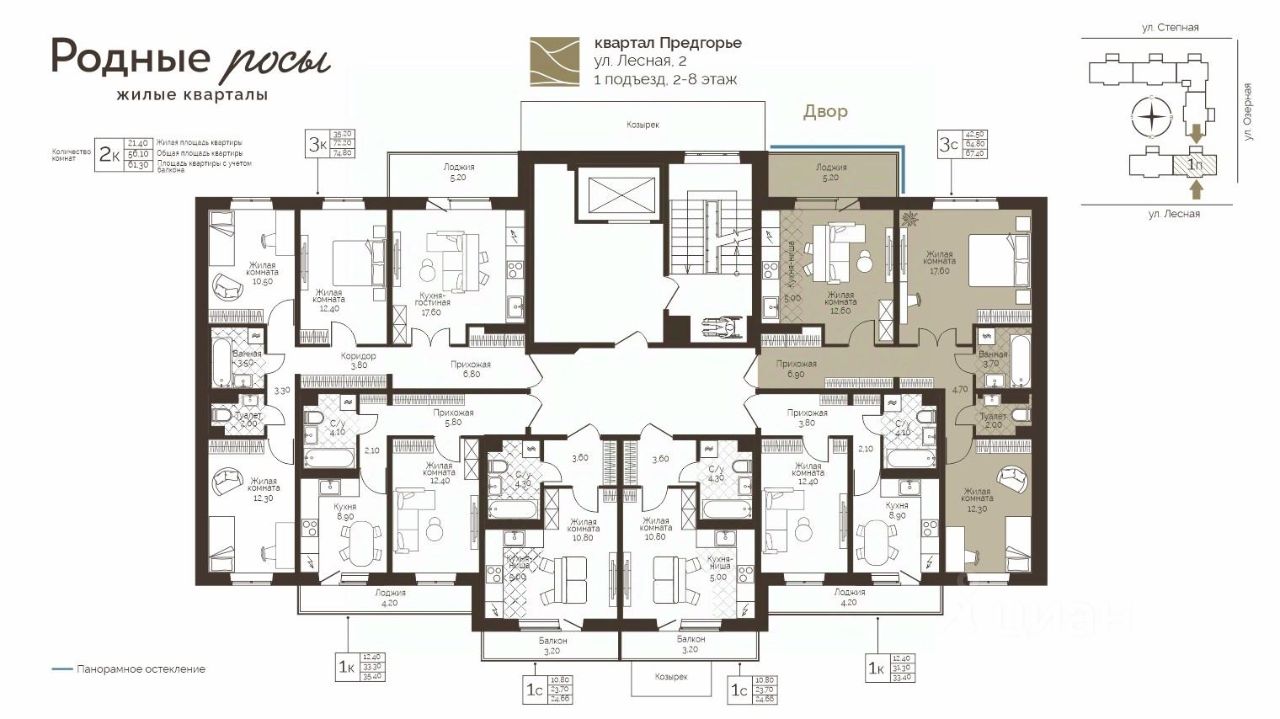 Продаётся 3-комнатная квартира в строящемся доме (Лесная, 2), срок сдачи: III-кв. 2028, общей площадью 67.4 кв.м., на 8 этаже. Новый жилой комплекс "Родные росы" от Специализированного застройщика "Финпроект" расположен в с. Фролы по ул. Академическая.