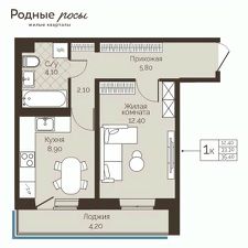 Продаётся 1-комнатная квартира в строящемся доме (Лесная, 2), срок сдачи: III-кв. 2028, общей площадью 35.4 кв.м., на 2 этаже. Новый жилой комплекс "Родные росы" от Специализированного застройщика "Финпроект" расположен в с. Фролы по ул. Академическая.