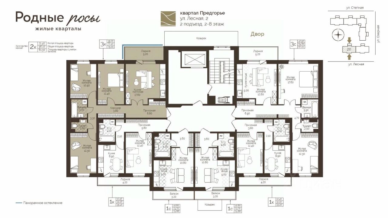 Продаётся 3-комнатная квартира в строящемся доме (Лесная, 2), срок сдачи: III-кв. 2028, общей площадью 75 кв.м., на 2 этаже. Новый жилой комплекс "Родные росы" от Специализированного застройщика "Финпроект" расположен в с. Фролы по ул. Академическая.