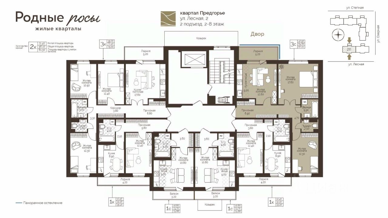 Продаётся 3-комнатная квартира в строящемся доме (Лесная, 2), срок сдачи: III-кв. 2028, общей площадью 67.2 кв.м., на 4 этаже. Новый жилой комплекс "Родные росы" от Специализированного застройщика "Финпроект" расположен в с. Фролы по ул. Академическая.