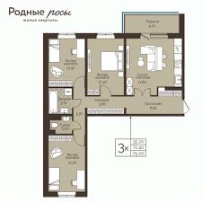 Продаётся 3-комнатная квартира в строящемся доме (Лесная, 2), срок сдачи: III-кв. 2028, общей площадью 75 кв.м., на 7 этаже. Новый жилой комплекс "Родные росы" от Специализированного застройщика "Финпроект" расположен в с. Фролы по ул. Академическая.