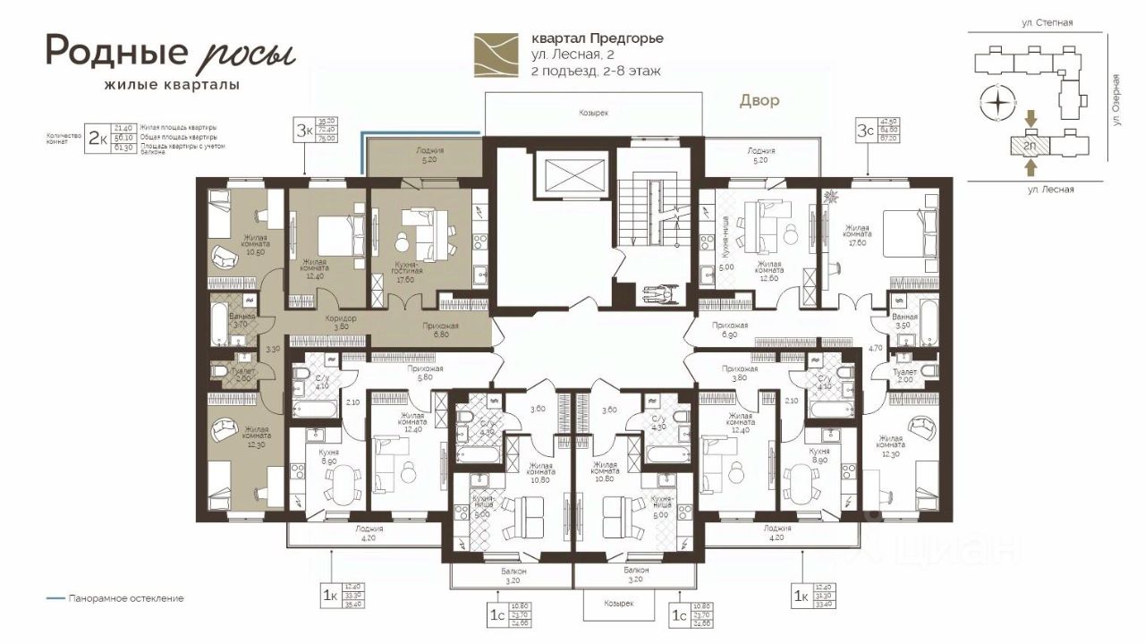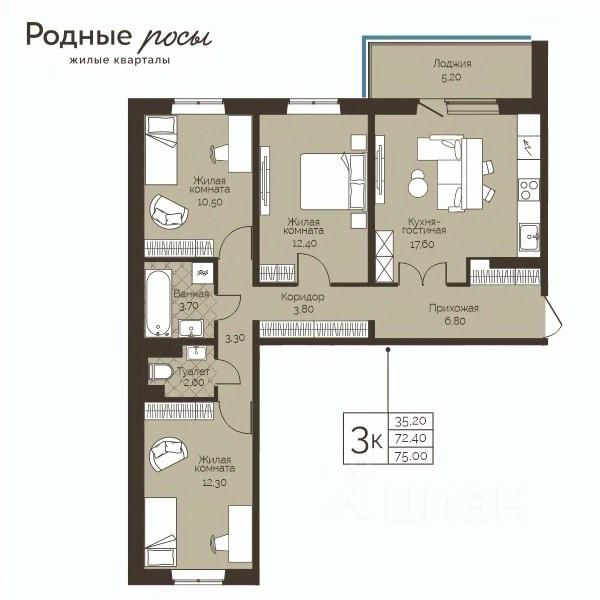 Продаётся 3-комнатная квартира в строящемся доме (Лесная, 2), срок сдачи: III-кв. 2028, общей площадью 75 кв.м., на 8 этаже. Новый жилой комплекс "Родные росы" от Специализированного застройщика "Финпроект" расположен в с. Фролы по ул. Академическая.