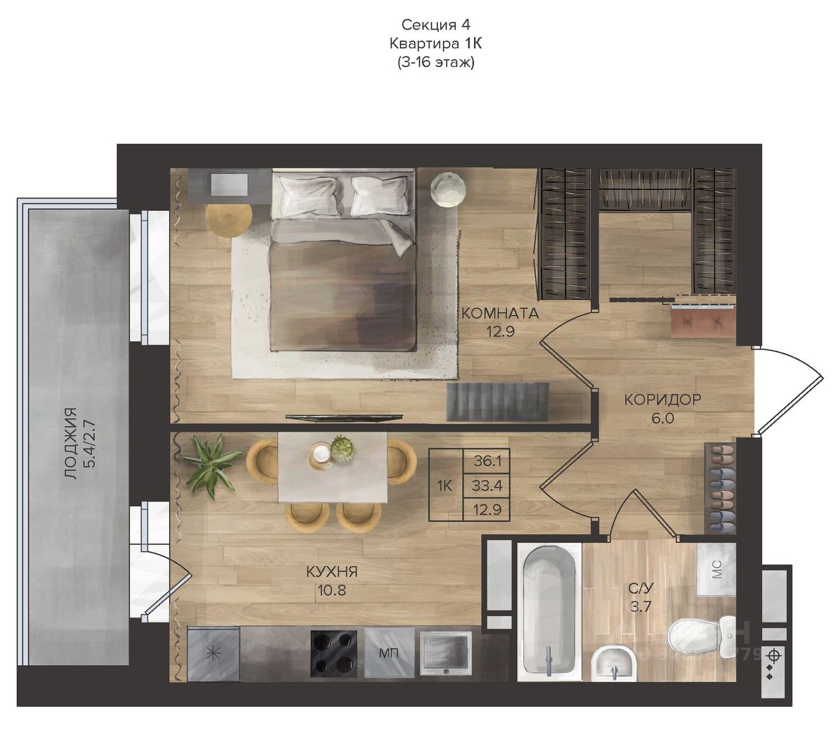 В 4-й секции дома расположено 40 кладовых, где удобно хранить крупногабаритные вещи и сезонные предметы: лыжи, снегокаты, велосипеды, коляски.