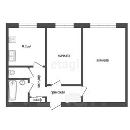 Кухня площадью 9 м² — очень просторная и функциональная. В квартире также есть большой зал и уютная спальня. Санузел и ванная комната раздельные.