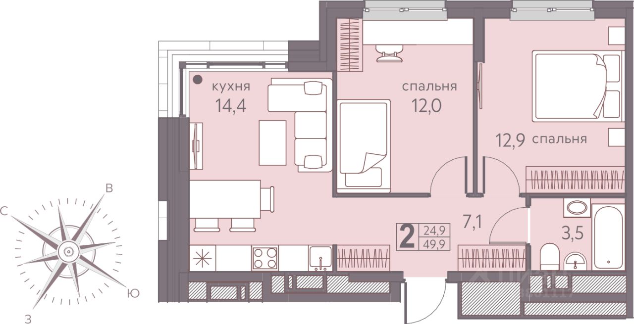 Продаётся 2-комнатная квартира в сданном доме (Серебристая, 7 ( Блок секции БС-1 БС-6, БС-16, БС-17, БС-18)), срок сдачи: I-кв. 2025, общей площадью 49.9 кв.м., на 12 этаже. Теплые кварталы "Погода" — это новый грандиозный проект от создателя Спортивного микрорайона "Ива", федерального застройщика "Девелопмент-Юг" .