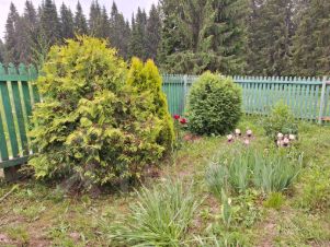• Перед домом уютный палисадник с тремя красивыми туями.