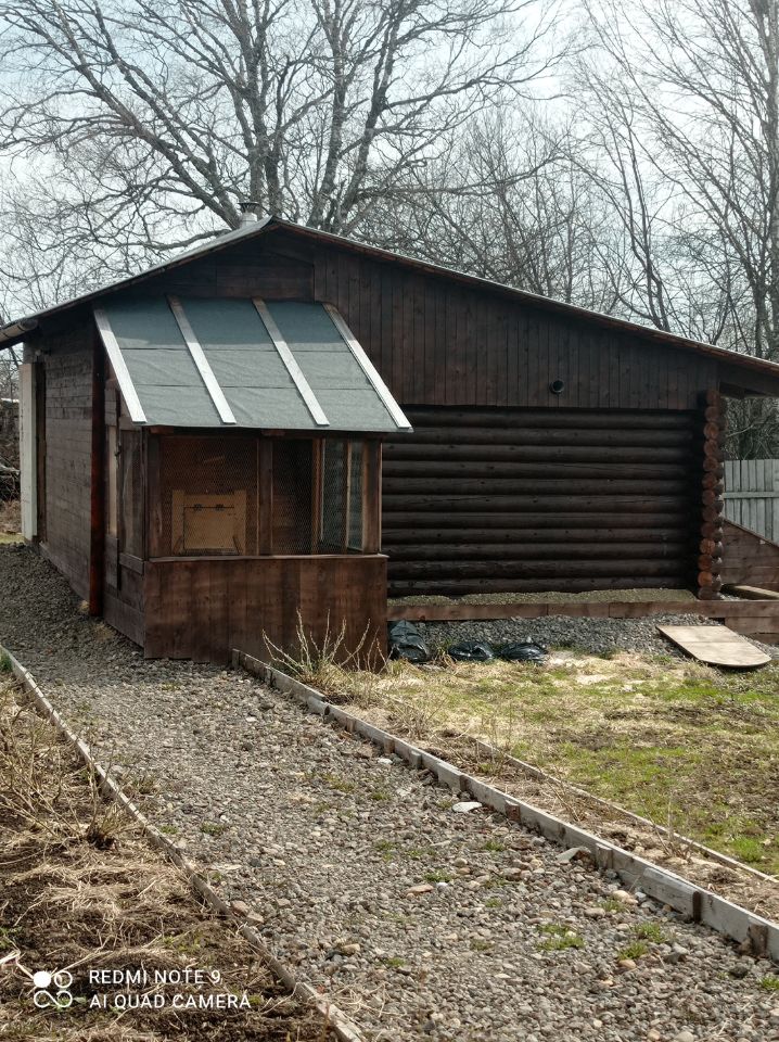 Есть стайка с выгулом для птиц из сруба, размером 3*6, и предбанником.
