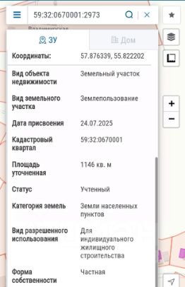 Разрешенное использование ИЖС, кадастровый номер участка 59:32:0670001:2973. Можно заказать постройку жилого дома.