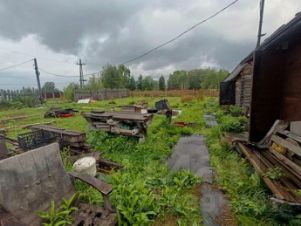 - Hа участке стоит бревенчатая баня, разделенная на три отсека: предбанник, помывочная, парилка. Утепленная времянка и сарай