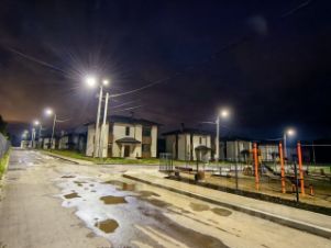 Дом обеспечен всеми необходимыми современными коммуникациями, включая индивидуальную скважину, газ подключен к каждому дому, водоотведение (локальные очистные сооружения модели ЕвроЛос Про 5+), электричество.