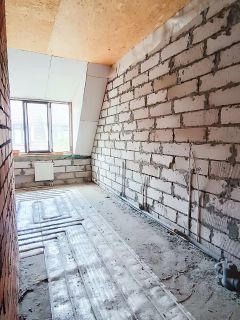 -стены из автоклавного газобетонного блока от ПЗСП, межкомнатные перегородки кирпич;