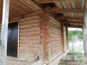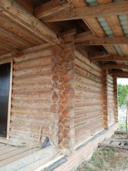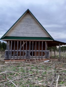 - Недостроенный сруб из оцилиндрованного бревна (северный лес, г. Горнозаводск, диаметр 24 см., лес зимний)