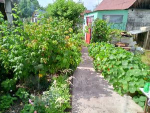 Участок ровный, сухой, разработан, ухожен. Имеется огород, цветочные клумбы, яблони, кусты вишни, малины, смородины и т.д. Беседка для отдыха и старенькая баня.