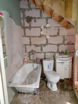 Дом из газоблока, утеплён, на бетонном ленточном фундаменте, 2021 года постройки. Окна стеклопакеты, новые двери. Площадь дома 106,2 кв.м, 2 этажа. На первом этаже комната и кухня-гостиная, санузел с ванной, котельная с прихожей; на втором этаже большая комната (без отделки). Для проживания использовали первый этаж.