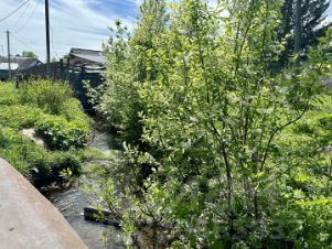 Рядом лес, залив реки Заборная в квартале от участка.