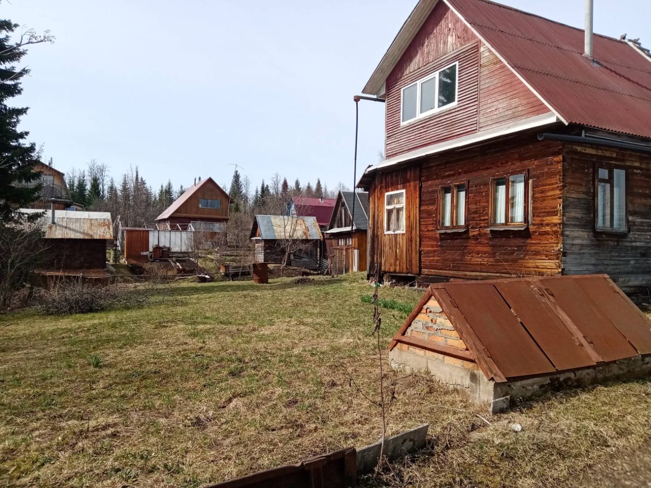 Есть аккуратный погреб для хранения овощей и продуктов летом.
