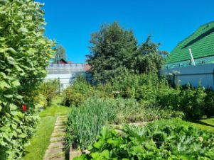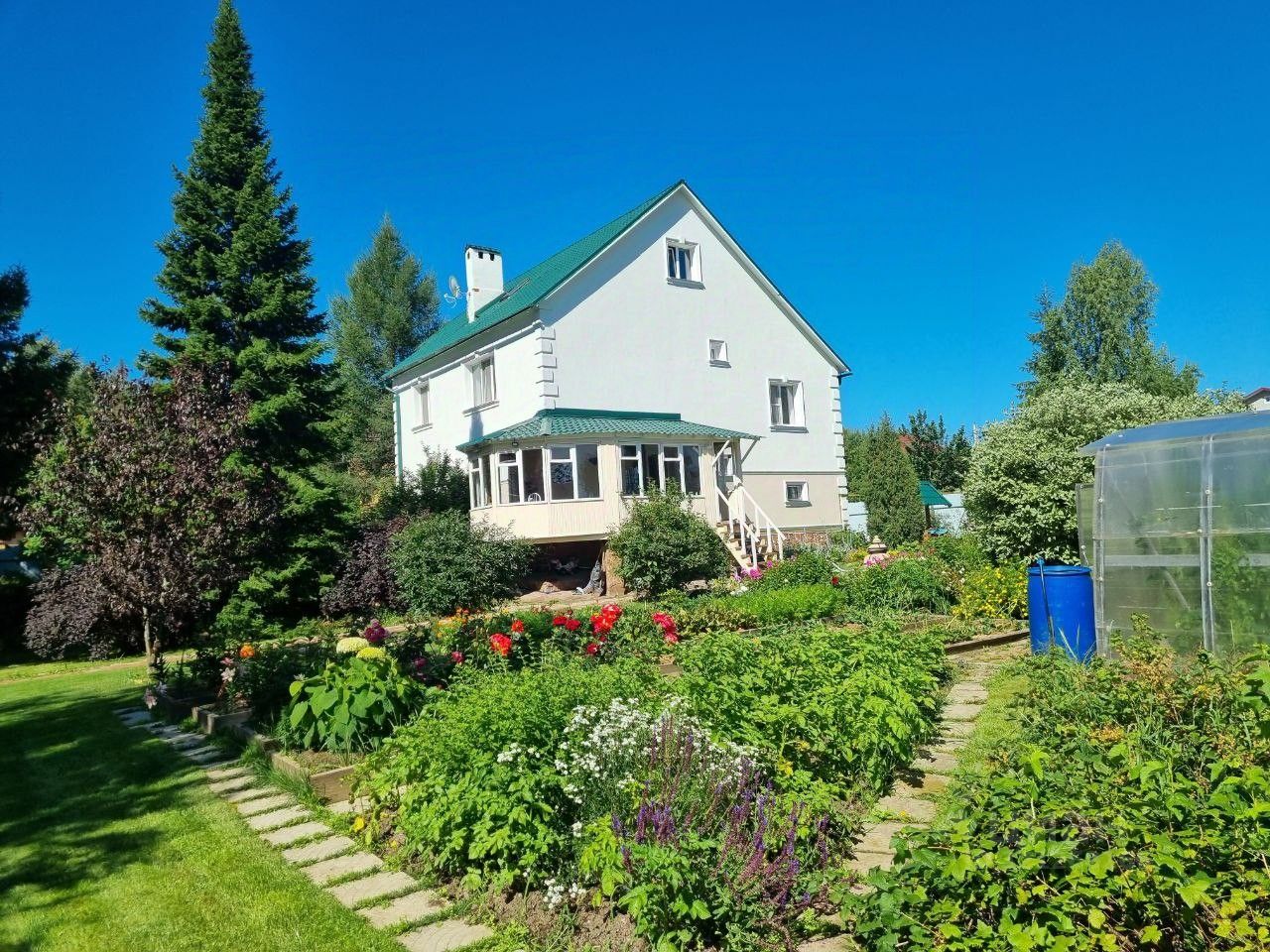 Плодовый сад и ягоды: Яблони, груши, а также кусты малины, смородины и крыжовника.
