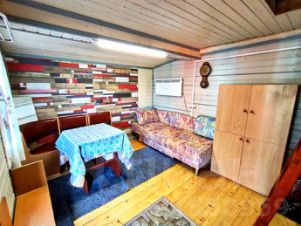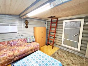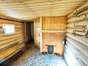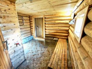 - Hа участке стоит бревенчатая ,утепленная баня на сваях площадью - 3 на 6, разделенная на три отсека: предбанник, помывочная, парилка.