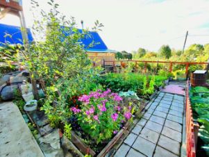 - Посадки: малина красная и желтая, черешня, вишня, облепиха, жимолость, смородина всех цветов, яблоня, клубника сортовая, цветы.